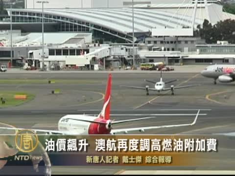 【新唐人2011年3月9日訊】澳大利亞航空公司(Qantas),星期三(3月9日),再度調高機票燃油附加費,其中歐洲航班調漲最多,這是數個月來第二次調整。不過澳航表示漲價依然無法抵銷成本。