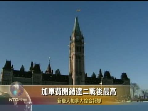 【新唐人2011年3月10日訊】一份新發表的研究報告顯示,加拿大目前的軍費開銷達二次世界大戰以來的最高點。