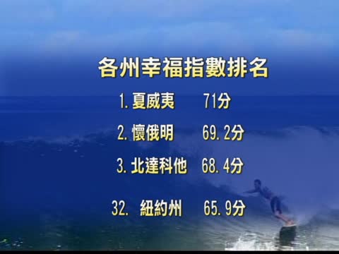 【新唐人2011年3月10日訊】根據美國“蓋勒普健康幸福指數”(Gallup-Healthways Well-Being Index)的統計,擁有燦爛陽光和美麗海灘的夏威夷當選2010全美最幸福州,其次為懷俄明及北達科他。