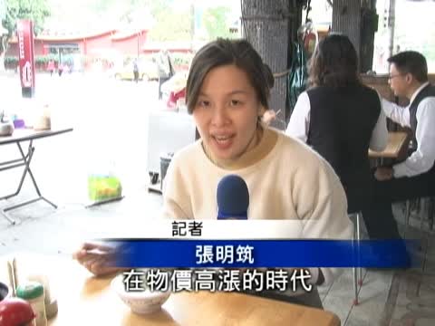 【新唐人2011年3月10日訊】各類民生物價齊聲喊漲,很多小吃業者已經忍不住喊漲。不過我們的記者還是在臺北市區找到廉價又美味的小吃,老闆娘說,他們在大龍峒做生意快廿年了,無論物價怎麼上揚,老闆娘始終堅持不漲價。只是這波物價漲勢兇猛,連老主顧都看不下去,勸她調整價格才能反映成本。