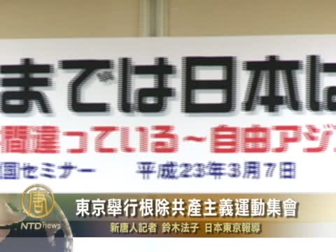 【新唐人2011年3月11日訊】3月7日,雨雪交集中,近百人參加了東京都議會事堂舉行的《如此下去日本將毀滅——共產主義是錯誤的共建自由亞洲連帶》的集會。東京都議員和數名大學教授,自由西藏協議會,日本維吾爾族協會,日本退黨中心和世界和平聯合以及國際勝共聯合等組織發表了演講。