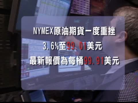 【新唐人2011年3月12日訊】日本3月11日遭遇強震,導致煉油廠大火,使得油價下跌,NYMEX原油期貨一度重挫3.6%至99.01美元,最新報價為每桶99.91美元。