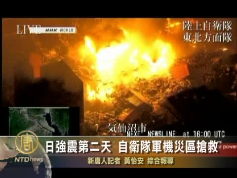【新唐人2011年3月12日訊】3月12日(六),日本大地震的第二天,日本政府派出自衛隊、軍機與船艦趕往災區,要在救援黃金72小時內盡量搶救生還者。