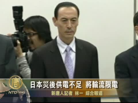 【新唐人2011年3月14日訊】由於地震造成了核電站設備損壞以及核物質泄露, 日本最大的電力公司-東京電力公司星期天表示, 目前電力輸送能力無法滿足電力需求, 在恢復供電能力的同時,將不得不施行各地區計劃性輪流限電。日本首相菅直人13日在記者會上表示這一措施,東京電力公司實施計劃性停電尚屬首次,實施時間可能持續長達數週以上。