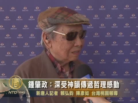 【新唐人2011年3月14日訊】高齡86歲的客家文學作家、前總統府資政鍾肇政觀賞了美國神韻國際藝術團13日下午在台灣桃園的第二場演出,他對神韻演出所傳遞的哲理非常感動。無論從畫面、旋律和節目內涵帶給他的感動,是他一生中不曾有過的感受。