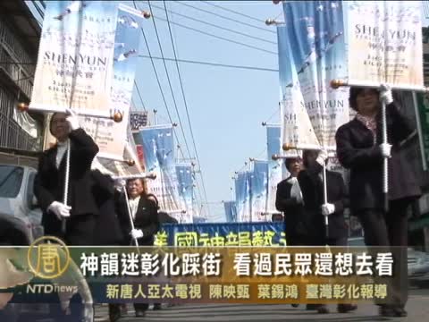 【新唐人2011年3月14日訊】美國神韻藝術團12日開始了台灣巡迴演出的表演活動,13日彰化一群神韻粉絲組成的踩街團在街上推廣神韻,其中不少看過神韻的民眾表示,還想一看再看。