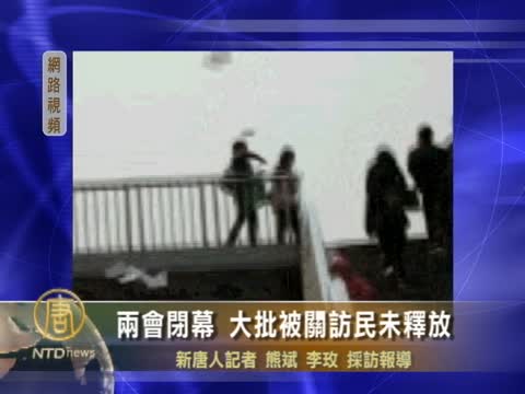 【新唐人2011年3月15日訊】中共兩會期間大批訪民湧向北京上訪,據訪民透露,今年兩會,當局採取更嚴密的防堵手段,很多訪民被軟禁在家中或關進黑監獄,兩會結束後仍未釋放,來自武漢的兩位訪民在上訪無門的情況下,以灑傳單的方式表達不滿。