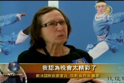 曾經從事過多年音樂和話劇工作,之後有在法國財政部任職,現退休的瑪莉.戴何斯.昔萊女士(Marie Therese Riglet) 看完神韻演出後激動不已:「這個如此精彩的晚會,您看我現在還是情不自禁,因為我覺得這些演員們都很不可思議,不管是演奏,還是舞蹈,技巧出眾,優美典雅,真的是不同凡響,我完全被感動了。我很興奮能看到這些演員門的表演,除此之外我感到這些演員們正在承受一些苦難,但很甘願輿他們見面的觀眾分享一些東西,展現一個很美好的前景,這個資訊很強烈, 這一點讓我很感動!」