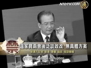 溫家寶3月14號表示,中國當前最大的危機是腐敗,要消除腐敗的土壤,必須進行制度和體制改革。但要在所謂“黨的領導下有序的進行”。