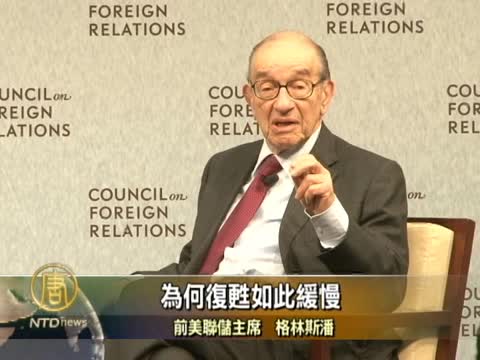 【新唐人2011年3月16日訊】週二,前美聯儲主席格林斯潘在華府表示,美國經濟復甦緩慢,應歸咎於政府對經濟的大規模干預。他認為減少政府干預,才能恢復私人資本對設備和工廠的投資。
