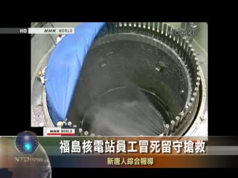 【新唐人2011年3月16日訊】因地震和海嘯而受損的福島第一核電站危機不斷,目前已有750名工作人員撤離,但仍有50人冒著生命危險,將海水注入危險的暴露核燃料棒,以防止其熔毀令上萬噸輻射塵進入空中,危及千萬人生命。