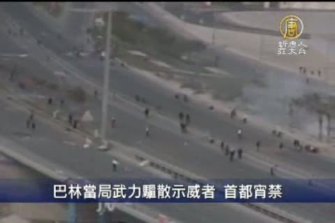 【新唐人亞太台2011年3月17日訊】巴林的政府軍和防暴警察星期三(17號)武力驅散了首都市中心珍珠廣場的示威人群,並宣布宵禁令,禁止巴林境內所有公眾集會和遊行。目前已造成至少5人死亡,數百人受傷。