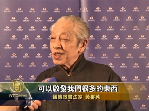 國寶級書法家黃群英:「就是神韻只應天上有,人間哪得幾回逢。這是一個非常好的一個機綠,是我們福氣啦!因為神韻她可以說發揮了真正的人性的這種光輝,也詮釋了生命的真諦。也可以說是提升了人生的價值,促進了整個社會的祥和。」