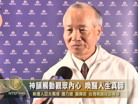 「我想天門大開最後那一幕,讓我們曉得我們人本來是應該享受這麼真、這麼善、這麼美的一個境界, 不應該沉淪在世間,在這邊流轉。我想今天最主要的也是告訴我們,我們自從天上來,我們應該回天上去,至於怎麼能夠回去,我想這就必須要我們能夠要我們能夠 有智慧去認清到路, 我想今天神韻藝術團非常難得,告訴我們,不僅僅是提供了我們這麼精彩的節目讓我們觀賞以外,我想他最深沉的意義應該是在這個地方,所謂天上神傳,地上傳 神。」