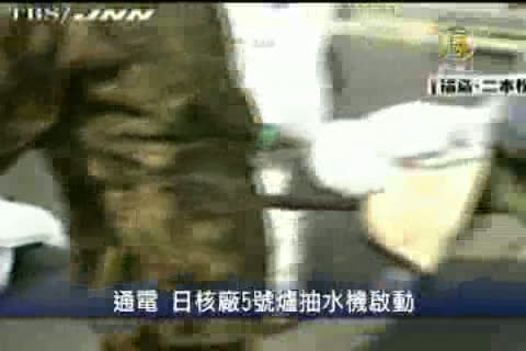 【新唐人亞太台2011年3月19日訊】首先帶您來看到,日本時事通信社報導,經營福島核電廠的東京電力公司已經啟動5號機反應爐的抽水幫浦。而且繼福島第一核電站的五號機組,上午恢復冷卻功能之後,修復工作持續進行,二號機組也可望完成供電工作。同時目前仍然共有279名留守的工程師,穿戴防護裝備,日以繼夜的工作,努力希望能儘快接上備援電力。