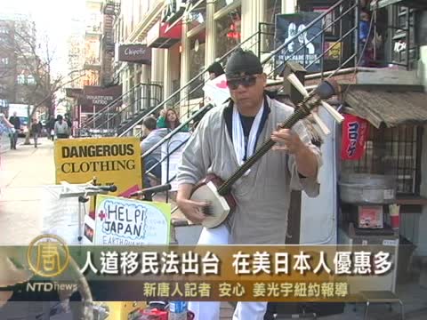【新唐人2011年3月20日訊】在日本發生的災難性地震和海嘯,使旅居美國的日本人陷入進退兩難境地。美國移民局3月17日公布了人道主義緊急移民法,為在美日本人辦理簽證延期,持學生簽證的可以找校園以外工作等優惠政策,希望幫助他們度過難關。請看本臺記者的詳細報導。