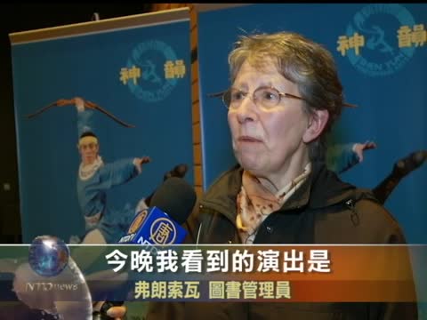 圖書管理員弗朗索瓦女士,她完全被神韻的內涵所感染,採訪中她幾度哽咽。