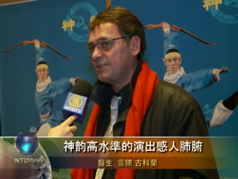 【新唐人2011年3月21日訊】3月19日,美國神韻巡迴藝術團,爲法國裏昂的觀衆上演第二場演出。神韻藝術家們帶領觀衆遨遊上下五千年中華神傳文明,展現一幅幅精美的歷史畫卷。觀衆們沉醉在神韻無法抗拒的藝術魅力與博大精深的精神內涵中。曲終人不散,演員們三次謝幕,觀衆久久不願離去。下面請看本臺記者從法國裏昂發來的報導。