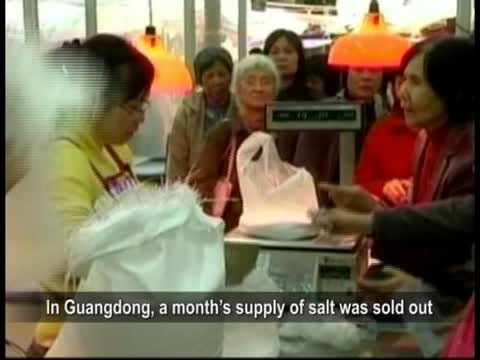 據報導,廣東過去兩天食鹽銷量,相當於平時一個月。而全中國17號一天的鹽銷量,相當於平時24天的銷量。民眾在搶光食鹽後,甚至連醬油、鹹菜也一搶而空,就連微博上很多人的問候語都變成了“你買鹽了嗎”?南京有名女子對著每包8元搶購來的50包鹽,慾哭無淚,說一家三口要吃4年。