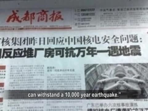 《成都商報》等多家大陸媒體刊登有關:「中廣核集團」回應中國核電安全問題,表示:中國反應堆廠房可抗「萬年一遇」地震。