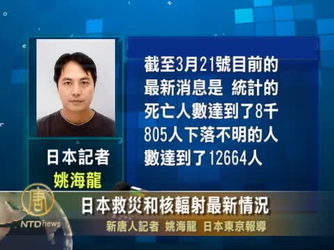【新唐人2011年3月22日訊】日本地震後進入第11天, 最新的災區傷亡人數和福島核污染情況如何, 請看本臺駐東京記者姚海龍發來的報導
