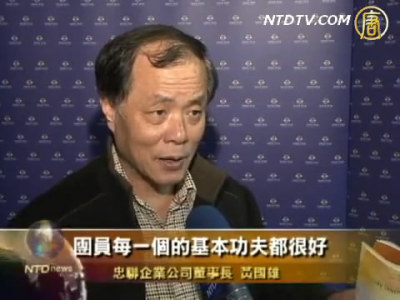 忠聯企業公司董事長黃國雄:「很可惜我今年才來看。以後如果遇到神韻來台灣的時候,我看會告訴很多朋友,來介紹很多好朋友來參觀這麼好的一個節目。」