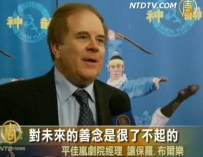 神韻巡迴藝術團在美麗奈克市的平佳嵐劇院隆重上演,讓保羅•布爾樂是本劇院的經理。