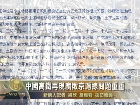 【新唐人2011年3月24日訊】近日中共國家審計署公布對京滬高鐵項目審計結果,羅列了7宗罪狀,包括開假髮票、挪用公款、中標單位在招標前就已開工、以及排斥其他潛在投標者等等,涉及的問題款高達50億人民幣。