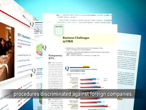 3月22號,“中國美國商會”發表了2011年度《商務環境調查》報告,這份報告顯示,中國的企業經營許可程序實際上歧視了外資企業。他們同時對許可程序的透明度、所需時間、能否獲批以及有關法規能否正確實施表示擔心。