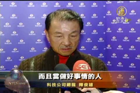 科技公司總裁 陳俊雄:「有滿大的感受,因為真正看到,我們中國(中華)五千年歷史的文藝,好像就是復興、就是浮出檯面上來,有這種很深的感受。而且在一個真善忍的部份,讓我有一個很強烈的感覺。」