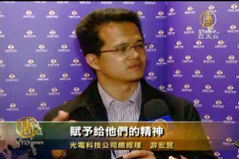 光電科技公司總經理 游宏昱:「幾乎他們每一個人的表情都好像是天上的神韻賦予給他們的精神,我認為這是一般的,不管是很好的芭蕾舞者或者是所謂的演藝同仁,他們所無法表現出來的。我想他們是發自內心的想要傳達給世上認識真、善、忍的精神,發自內心的傳達出來,我覺得這是最珍貴的!」