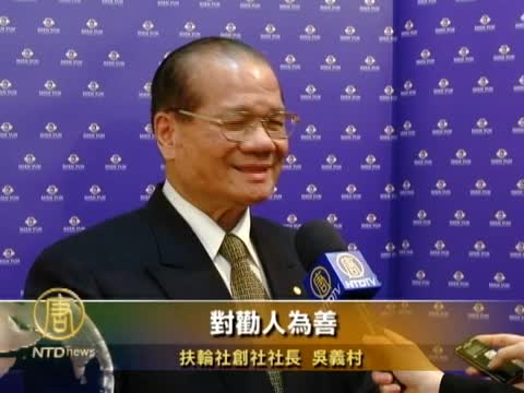 扶輪社創社社長 吳義村:「把中國五千年的文化,發揚得淋漓盡致,對於在當今功利主義的社會,對勸人為善,心靈的淨化,對社會是正面的。」