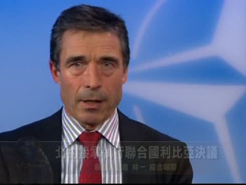北約秘書長安諾斯.福格.拉斯穆森(Anders Fogh Rasmussen):“北約盟國已決定, 全權負責在利比亞的軍事行動, 執行聯合國安理會的決議。我們的目標是保護受卡扎菲政權威脅的平民和居民區。北約將全面執行聯合國決議, 不多也不少。”