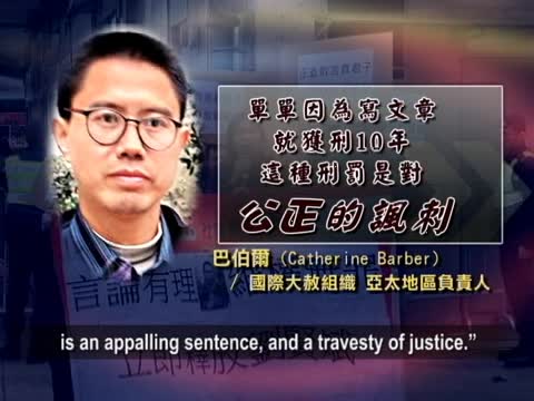 國際大赦組織亞太地區負責人巴伯爾 (Catherine Barber)強調,單單因為寫文章就獲刑10年,這種刑罰是對公正的諷刺。
