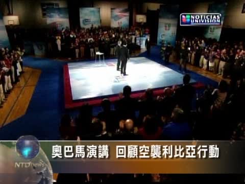 【新唐人2011年3月29日訊】奧巴馬總統美東時間28日傍晚七點半開始,在華府(National Defense University in Washington)作了27分鐘演講,關於美國參與聯合國授權的空襲利比亞行動的原因以及所扮演的角色。