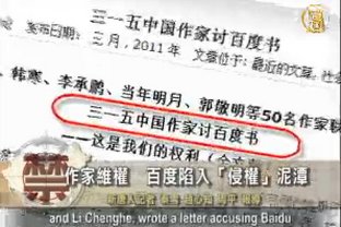 【新唐人2011年3月29日訊】中國大陸50位知名作家公開聲討百度侵犯他們的著作權。百度在26號公開道歉,但沒有承認侵權,只承諾在未來3天內刪除文庫中,沒有獲得版權方授權的所有文學作品。這盤對局是否結束,還是剛剛開始?讓我們一起去看看。