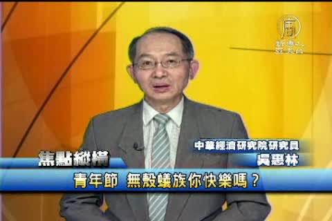 【新唐人亞太台2011年3月29日訊】今天(29日)是青年節。不過當許多年輕人也許仰望都會區的天空,都會想同一個問題,那就是:什麼時候才買得起房子?儘管奢侈稅要在七月上路,但青年人普遍不認為,會對打房有幫助。現代的青年人,究竟面對的是什麼樣的經濟環境?辛苦打拼,會不會有未來?我們今天的焦點縱橫,特別在329這一天,關懷新世代所面對的經濟難題。
