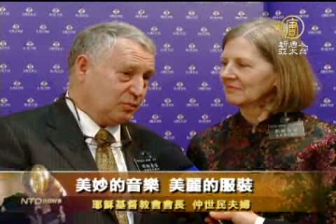 耶穌基督教會會長 仲世民夫婦:「我就是喜歡她的美,我喜歡她的顏色,我喜歡她的編舞、舞蹈。我從前沒有真正看過中國傳統舞蹈。我喜愛演員的舞步,你知道,長袖的絲質服裝,我覺得讓人印象深刻,是的,我也這麼覺得。」