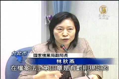 【新唐人亞太台2011年3月30日訊】總統府近日完成公文清查,指控民進黨執政時期有3萬多份文件沒有歸檔,決定將扁呂蘇等17位首長移送監察院,30日這個議題在立法院引起了朝野論戰。