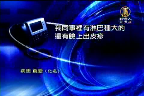 病患 真愛(化名):「我同事裡有淋巴種大的還有臉上出皮疹(與病患相同症狀),但是我不能確定他跟我有關;因為我們是經常在一塊吃火鍋的。全國最好的醫院去查;查了病毒都有十幾種,但是就查不出來是啥。」
