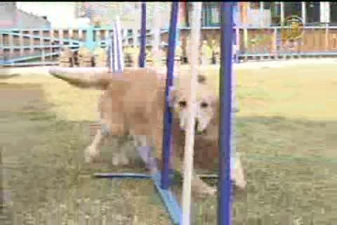 跳圈圈、爬A型板、跳柵欄、接飛盤。哇!還會表演特技呢!不過,最厲害的,是這裡的狗都會聽指令!不管是趴下、站起來,都沒問題!這裡不是馬戲團,而是位在鹿港的訓犬學校。狗狗們到底在學校學些什麼呢?