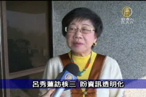 前副總統呂秀蓮今天下午到恆春核三廠參訪,她說,希望核三廠能多跟附近居民及環保團體溝通,並將安全措施及運轉等資訊透明化,避免外界的誤解。