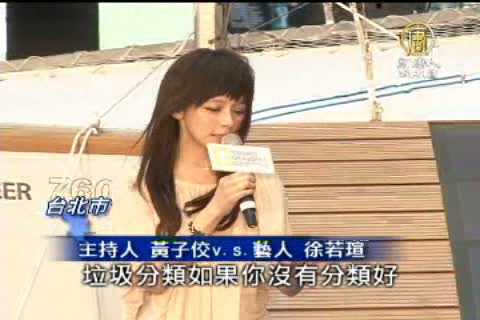 主持人 黃子佼v.s.藝人 徐若瑄:「我在家裡有做六種分類,唉呦,趕快跟大家分享一下,這個真的是專業的,可燃、不可燃,我好幾年就有這個習慣,我們一般只知道可燃不可燃,還有保特瓶、玻璃罐跟鐵罐,還有紙類的回收,再加一個廚餘,你說這個代言人真是找對了,你在家裡就這麼細心的在愛地球,我是家裡的糾察隊,真的,如果我看到不可燃裡面有衛生紙,你會怎樣,我會把他抓出來,然後呢,吃掉,沒有,我沒有辦法接受看到這種事情,就不容許身邊的人不環保,對不對,那你想想看,垃圾分類如果你沒有分類好,那這一些在幫我們做垃圾分類的,非常可憐他要在一堆很髒的東西裡面,去再挑東西出來,沒錯沒錯沒錯,如果每一個人都做好,這個可以讓大家,更容易把環保的事情,效率比較快一點。」