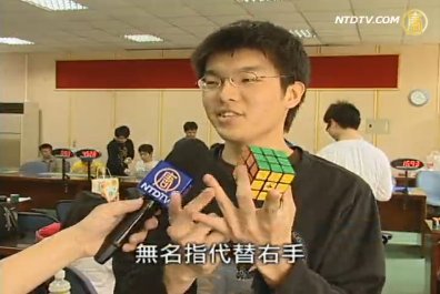 台灣3X3單手平均記錄保持人林浩正:「高一高中的時候開始玩,要手指來取代你整只手,所以你要把手指練的更靈活,用食指代替左手,無名指代替右手,所以我就這樣轉(手指快速轉動畫面),然後 這樣像雙手,用這種感覺然後繼續練習。」