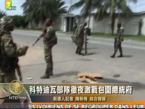 【新唐人2011年4月5日訊】效忠科特迪瓦民選總統瓦塔拉的部隊,連夜對總統府發動大規模攻勢,並在星期二包圍總統府,希望能抓補到大選失敗後拒絕下臺的巴博。