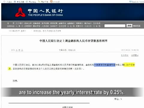 【新唐人2011年4月7日訊】大陸央行最近宣佈再次加息,將一年期存貸款基準利率提高0.25個百分點。這也是今年(2011年)以來的第二次加息。分析人士認為,這顯示大陸通脹壓力加劇,當局擔憂社會不穩。民眾則指責當局轉嫁通脹壓力,最終買單的還是老百姓。專家預測,大陸的通脹狀況還會繼續惡化。