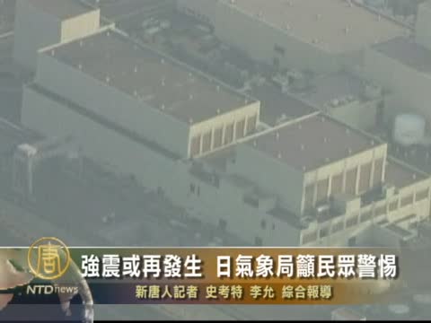 【新唐人2011年4月9日訊】強烈的餘震重擊日本東北部之後,宮城縣女川核電廠的反應爐廢燃料池出現漏水,一度引起短暫的恐慌。日本氣象廳8日晚上警告說,餘震幷沒有停息,近日發生7日晚上一樣的6級以上強震的可能性還有。因此呼籲國民提高警惕,注意安全。
