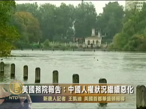 【新唐人2011年4月9日訊】4月8日,美國國務院公布了2010年各國人權狀況報告。報告中說,中國的人權狀況2010年繼續呈惡化趨勢。國務卿希拉里也對中國2011年的人權發展提出警告,並敦促釋放數十名最近被抓捕的民間異見人士。