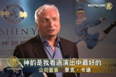 公司董事麥克·卡迪:“演出整體的導演、音樂、編舞,真的是非常迷人,我說是製作精良,與歐洲的演出不同,神韻令人深受啟發,令人得到了最大程度的啟發。”“我得承認,神韻是我看過的演出中最好的,演出的製作、專業水平和欣賞價值都是難以置信的。”