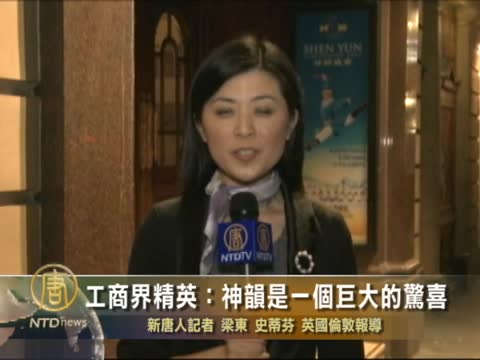 【新唐人2011年4月11日訊】4月9日晚間,美國神韻巡迴藝術團在英國國家歌劇院所在地倫敦大劇院 (London Coliseum)上演第六場演出,很多工商界人士到場觀看,他們稱神韻晚會超凡脫俗的表演對他們來說是一個巨大的驚喜。請看來自英國的報導。